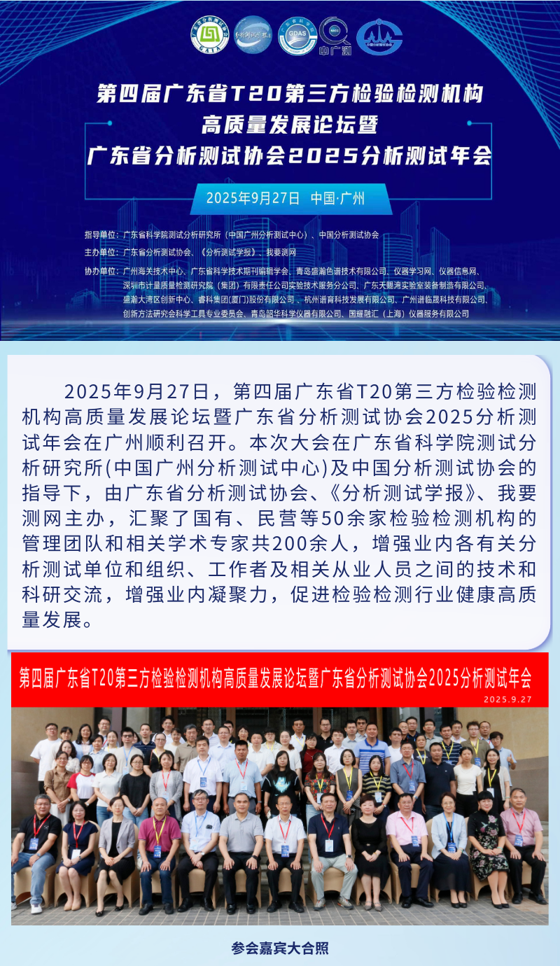 第四届广东省T20第三方检验检测机构高质量发展论坛暨广东省分析测试协会2025分析测试年会圆满落幕!