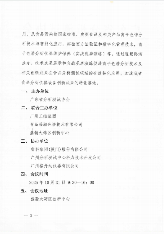 广东省分析测试协会技术成果推介会(第十期)食品分析热点应用与检测技术成果推介会