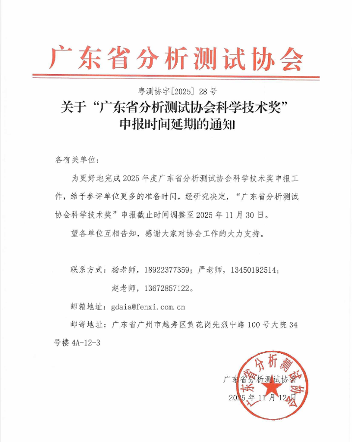 关于申报广东省分析测试协会科学技术奖的通知