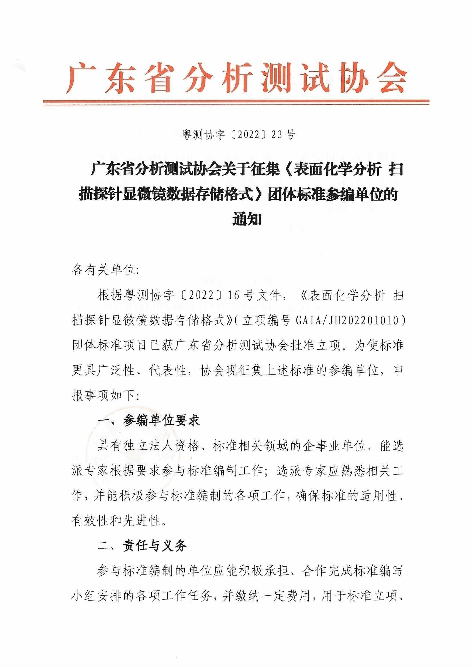关于征集《表面化学分析 扫描探针显微镜数据存储格式》团体标准参编单位的通知